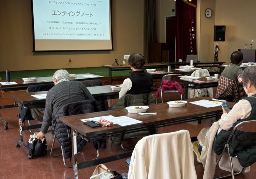 2月2日10:00~「第24回れいほく寺子屋」が開催され、多くの皆様にご参加いただきました。「れいほく寺子屋」は管内に住む女性が生活全般について学習し、明るく豊かになれるような自分磨きができる場となる事を目的として、年に2回開催されています。その中の1講座として「はじめよう!終活・「終活」とは?」を演題とし、エンディングノートセミナーを開催しました。当日は寒い中元気いっぱいの女性部の皆様と、有意義な時間を過ごすことができました。どうもありがとうございました。